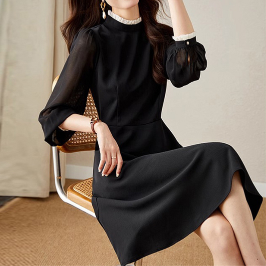 スタンドカラーキーネックソリッドカラーワンピース 1965