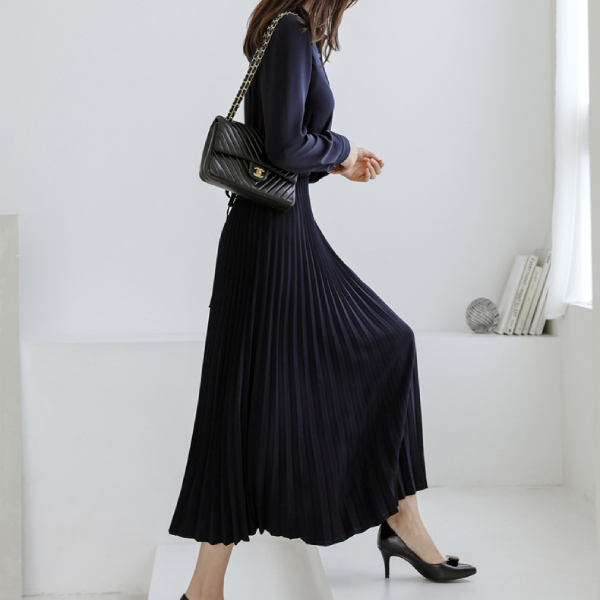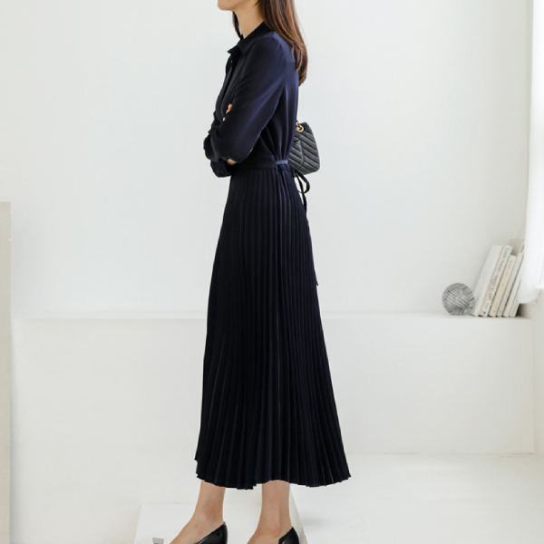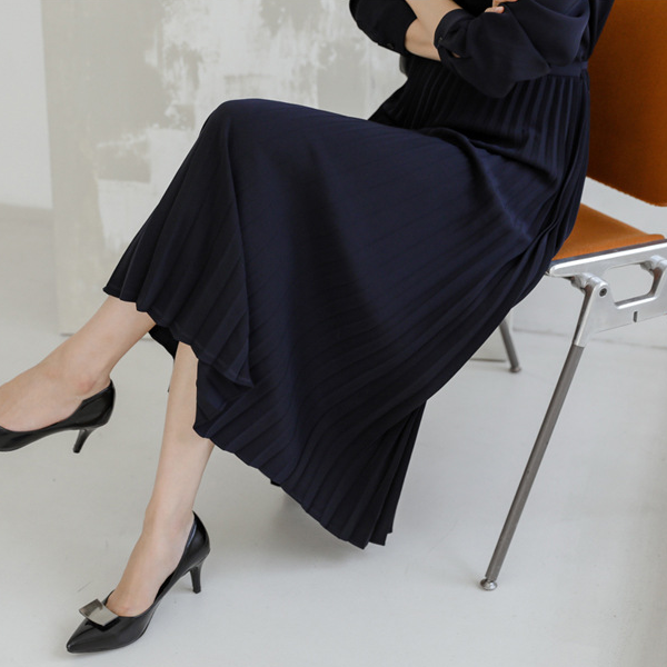 ウエストマークタックプリーツワンピース 1716