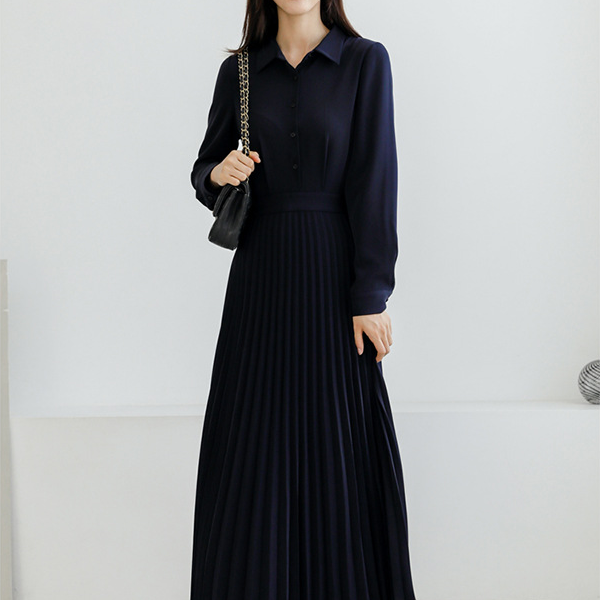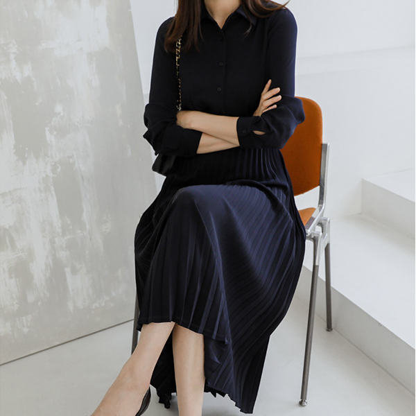 プリーツスカートドッキングシャツワンピース 1709