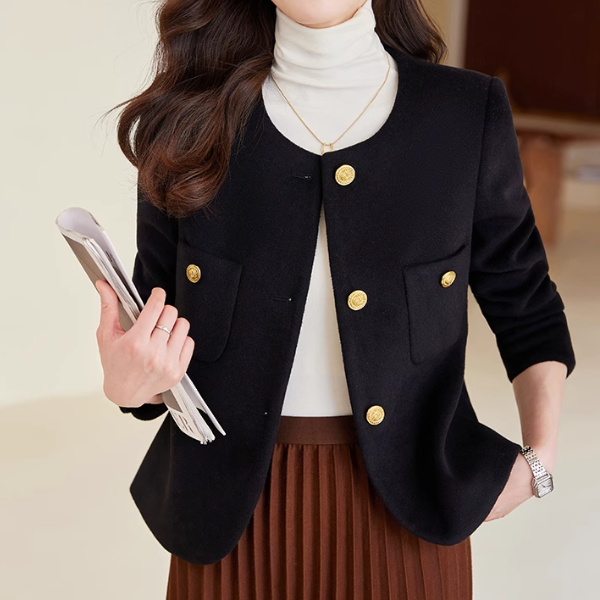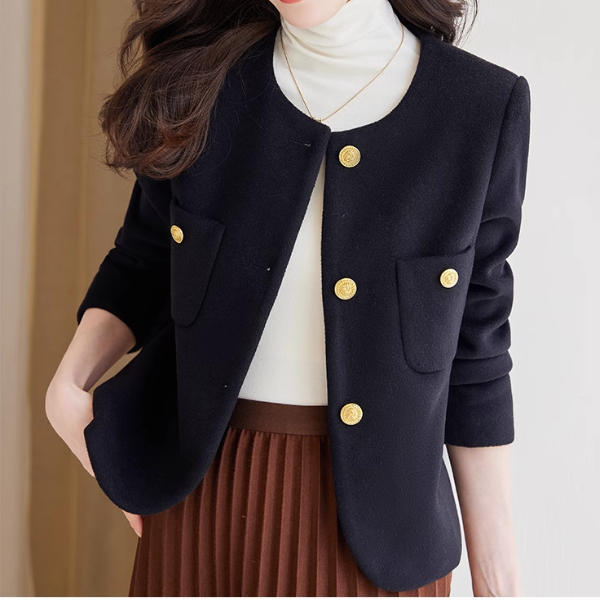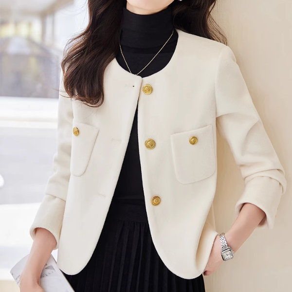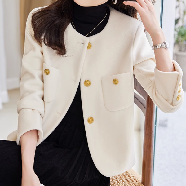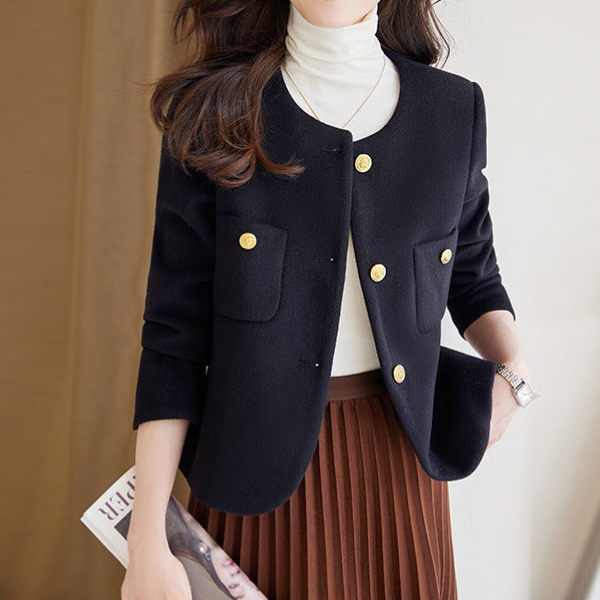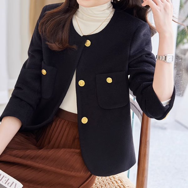 スタンドカラーキーネックソリッドカラーワンピース 1965