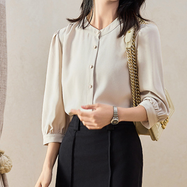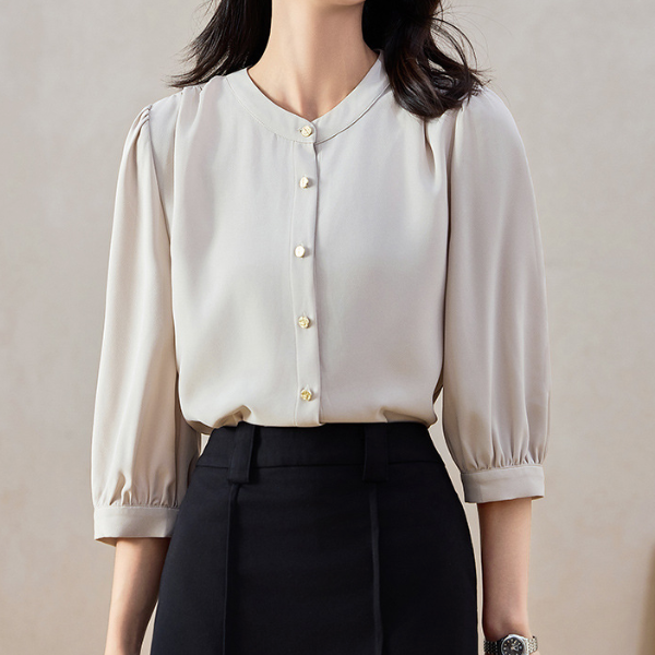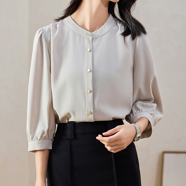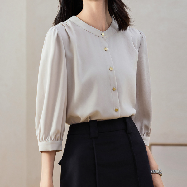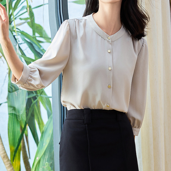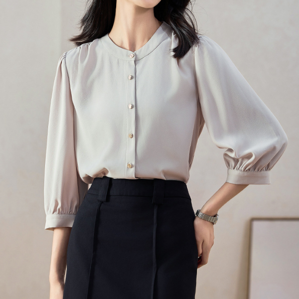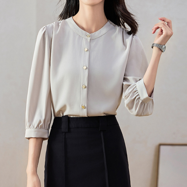 スタンドカラーシンプルシフォンブラウス 1772
