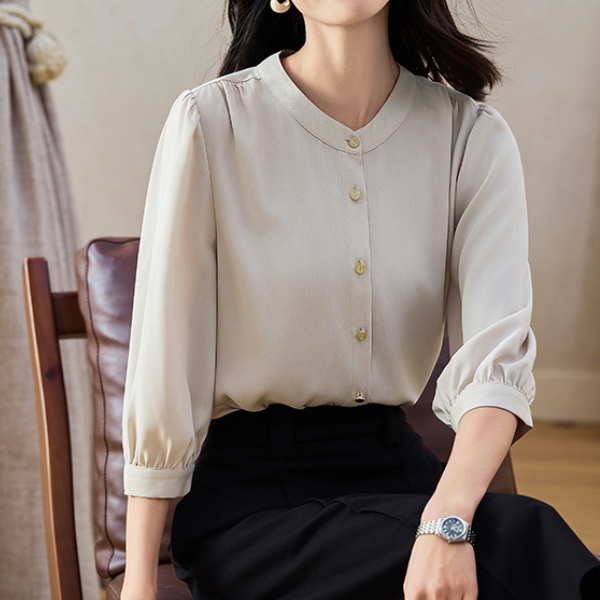 ラウンドネックパールネックデザインブラウス 1764