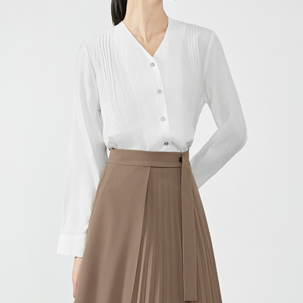 スタンドカラーキーネックソリッドカラーワンピース 1965