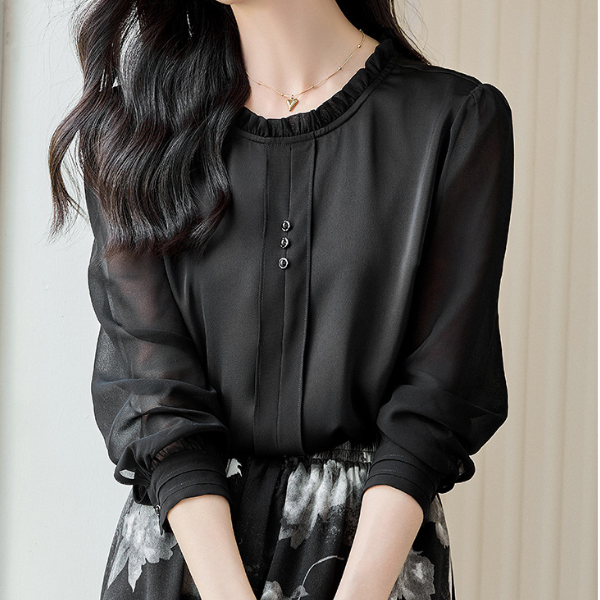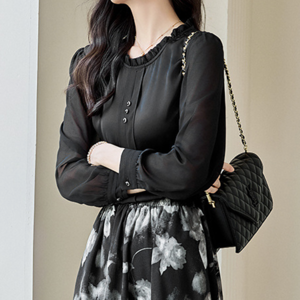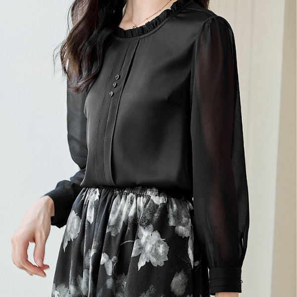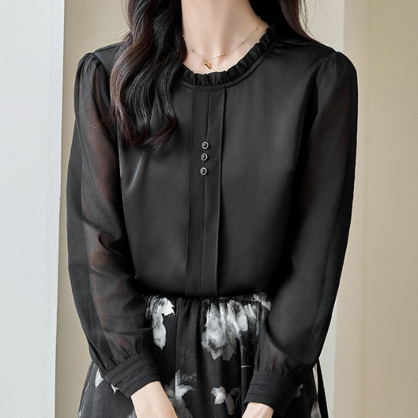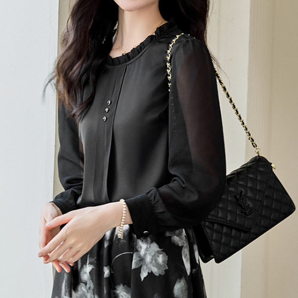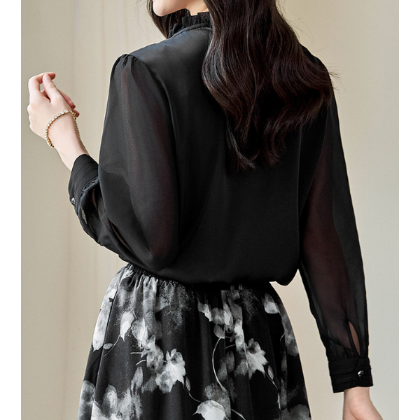 レーススタンドカラーフロントタックシアースリーブブラウス 1951