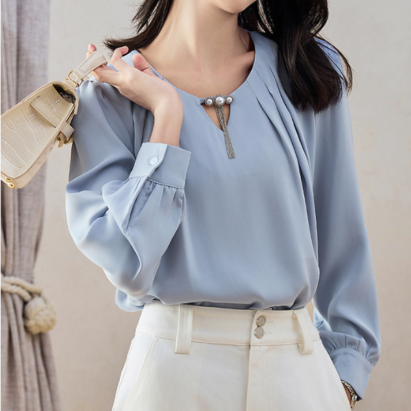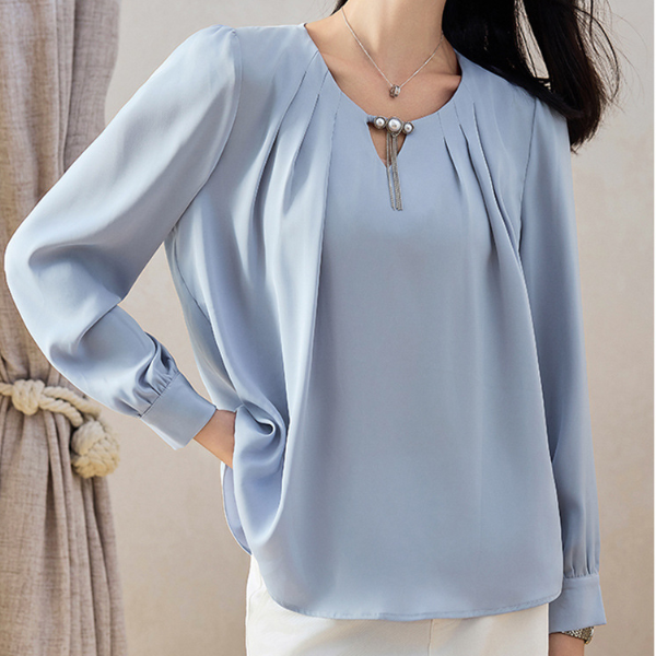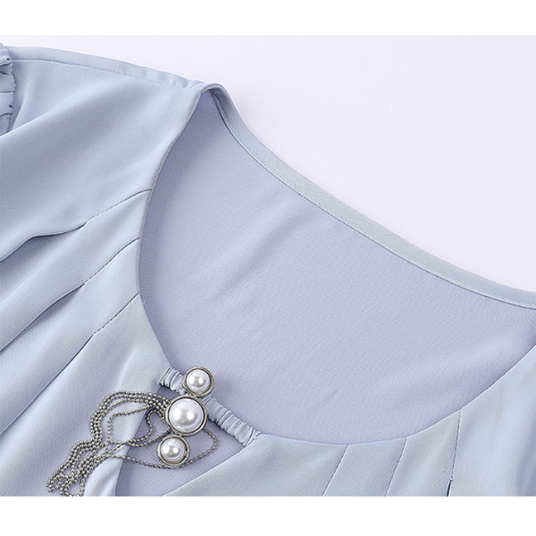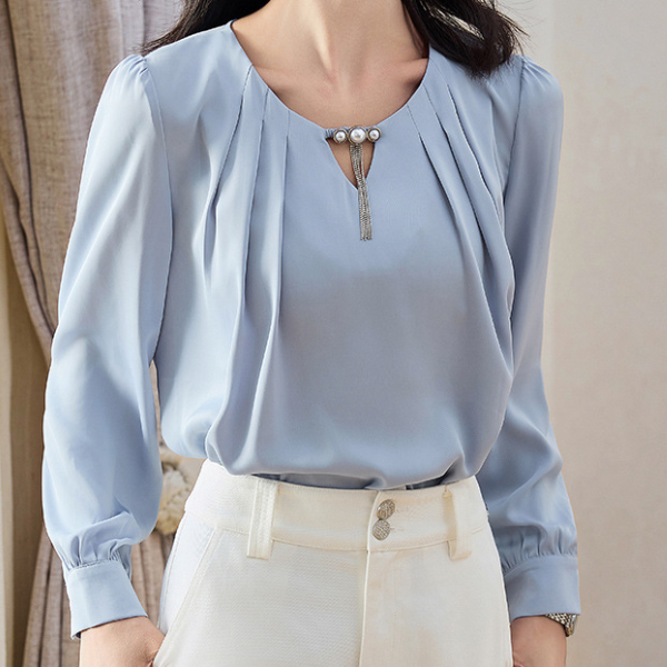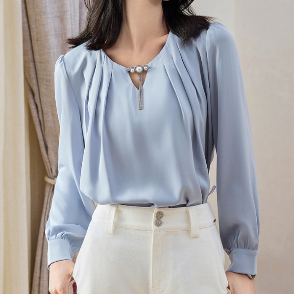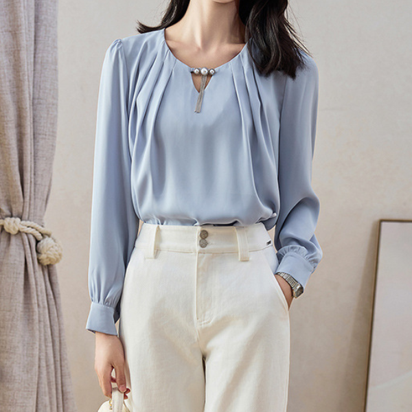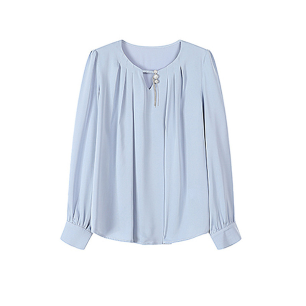ラウンドネックパールネックデザインブラウス 1764