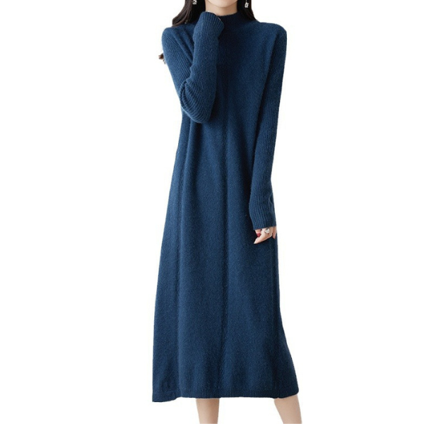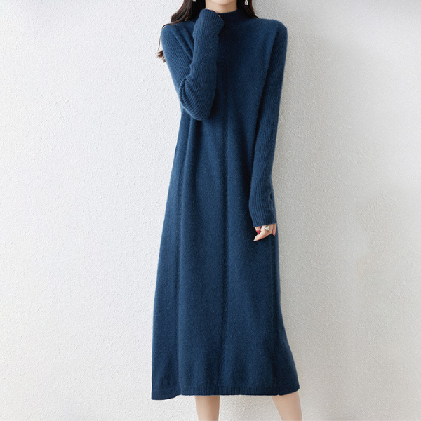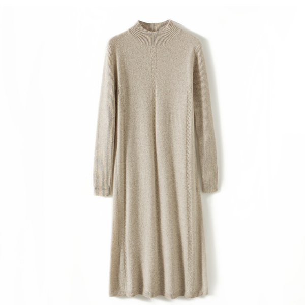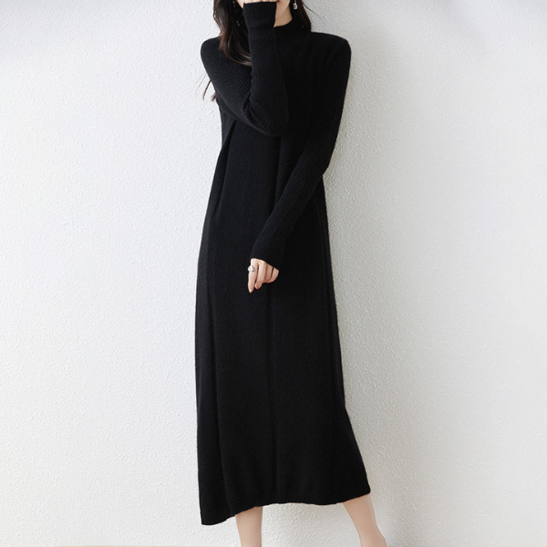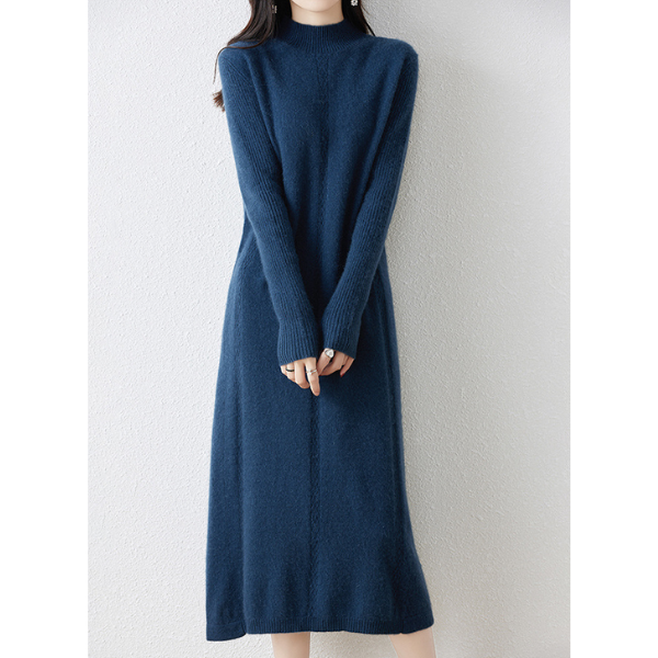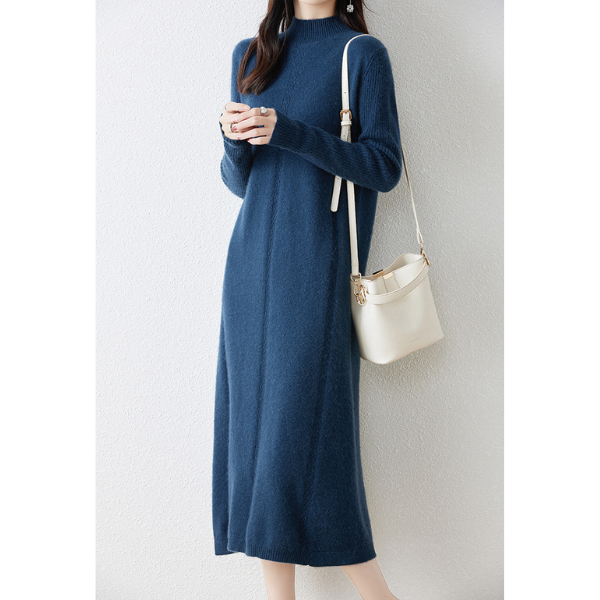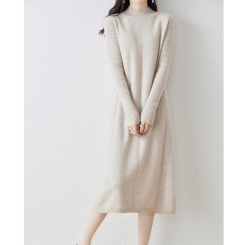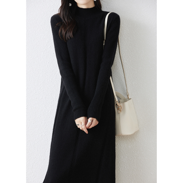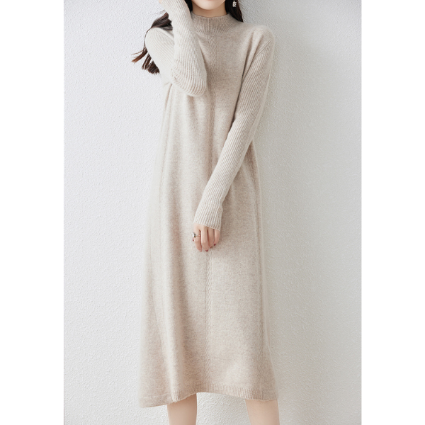スタンドカラーキーネックソリッドカラーワンピース 1965