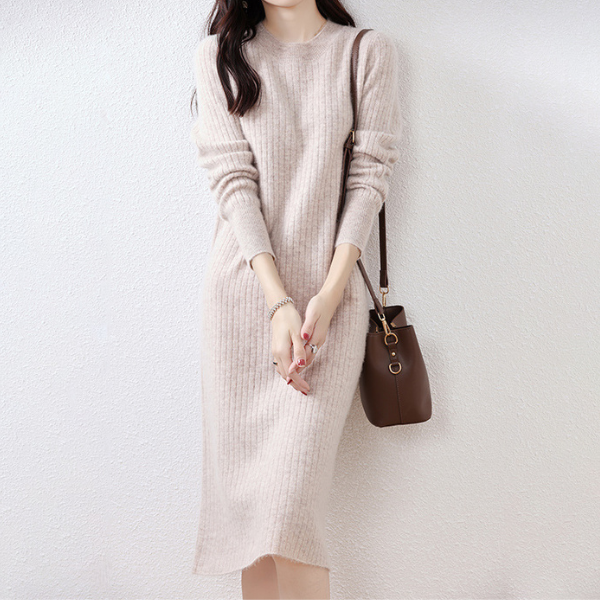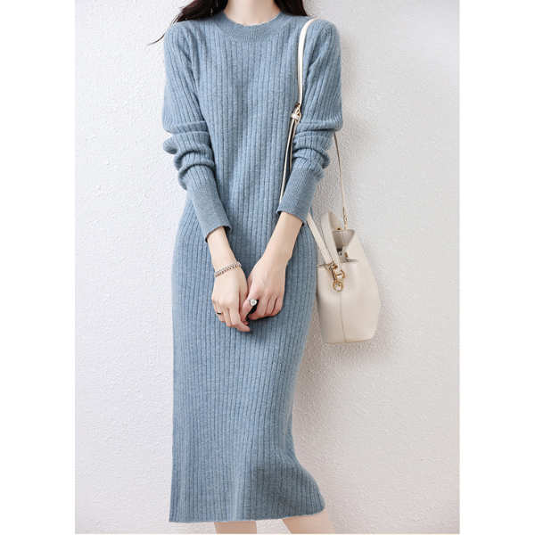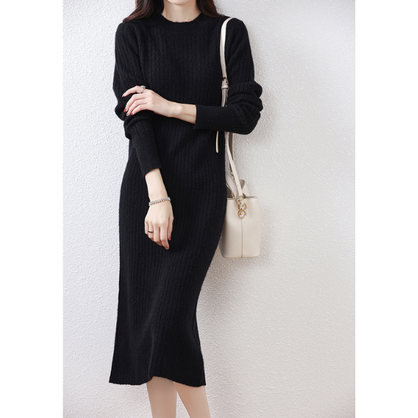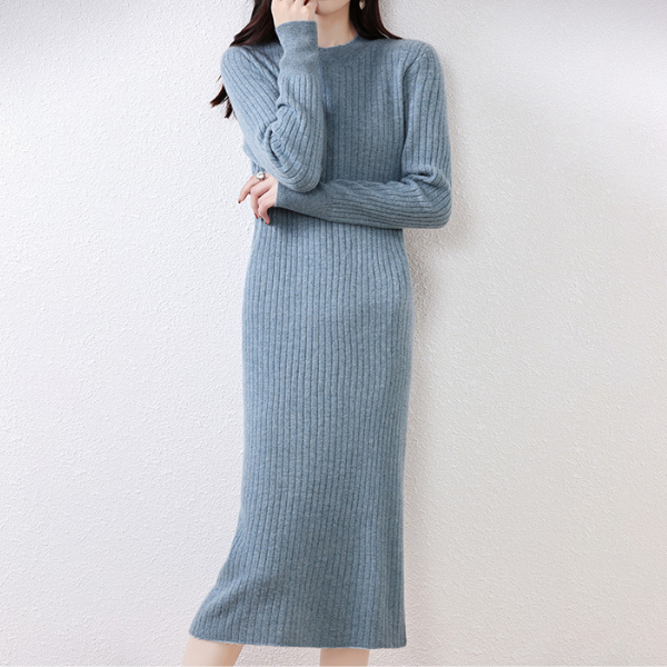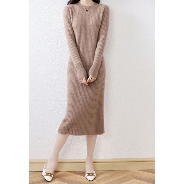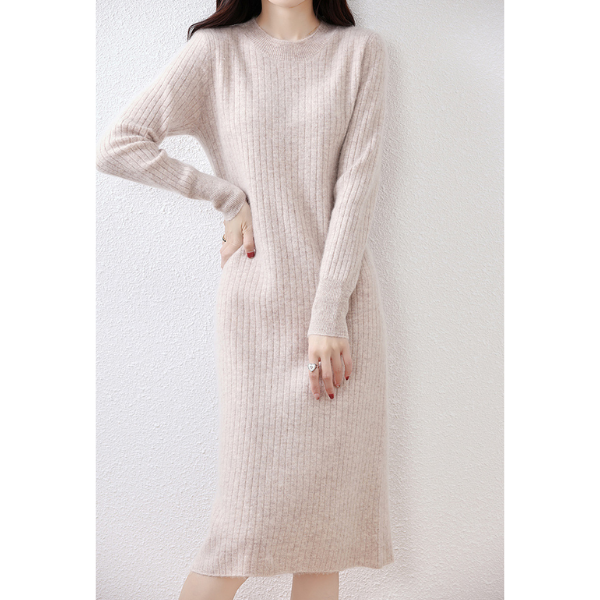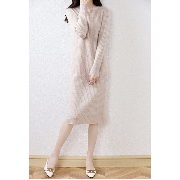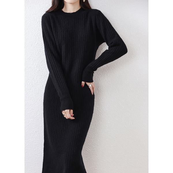 ラウンドネックスリムフィットリブニットワンピース 2023