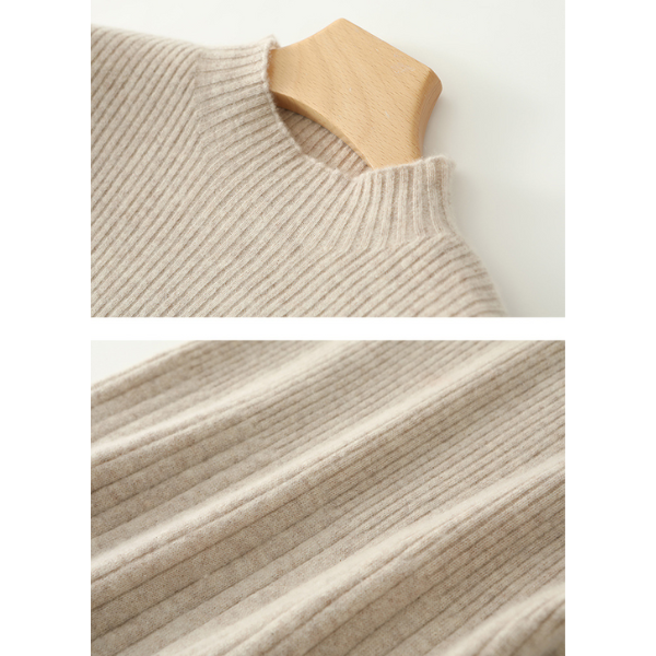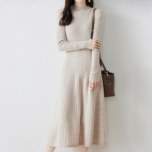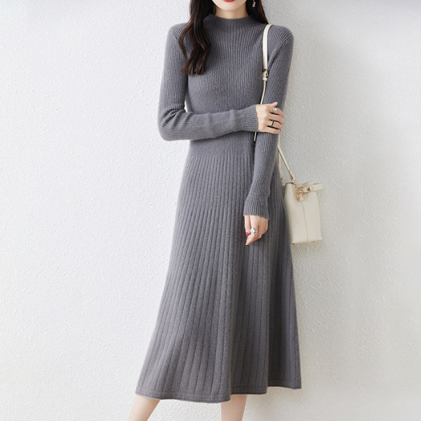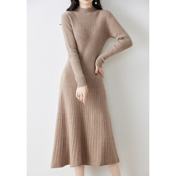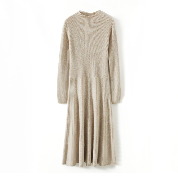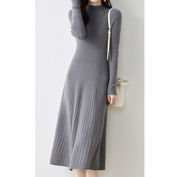 ハイラウンドネックウエスト切り替えリブニットワンピース 2035