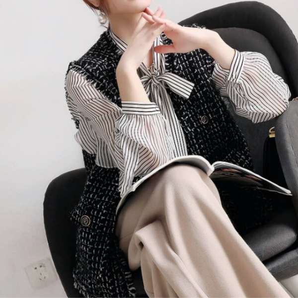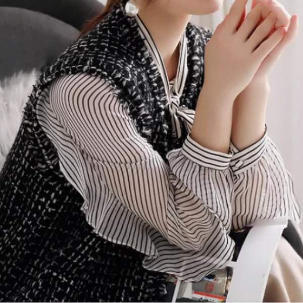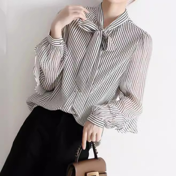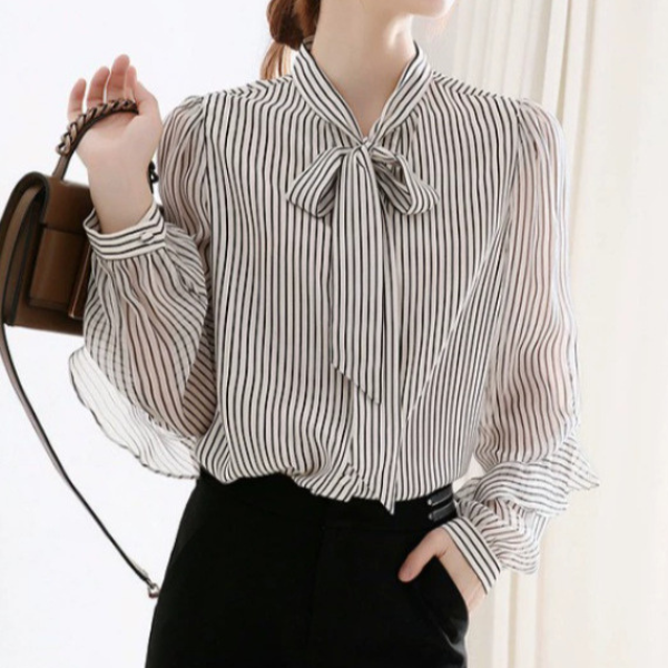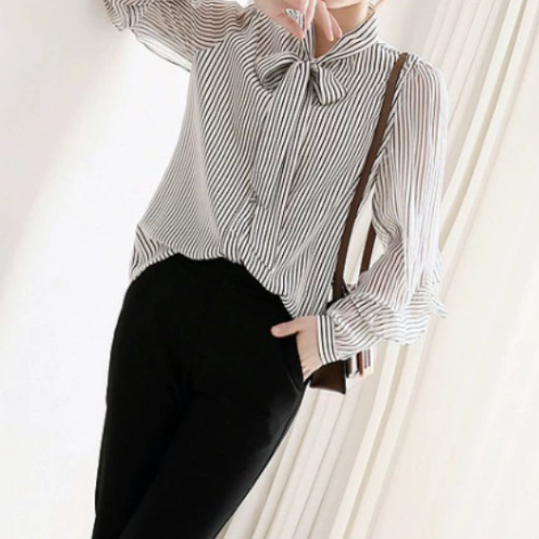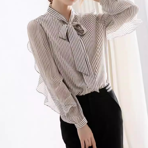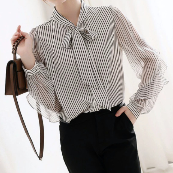 ボウタイリボンフリル袖ストライプブラウス 2290