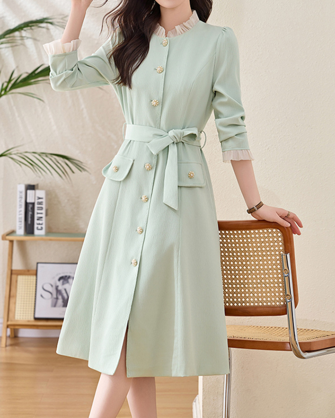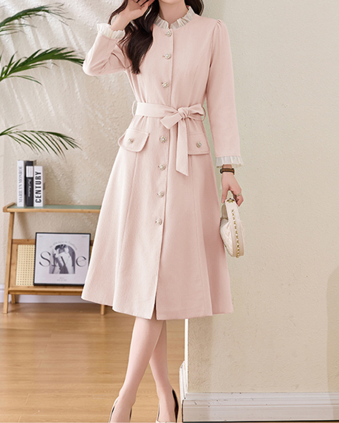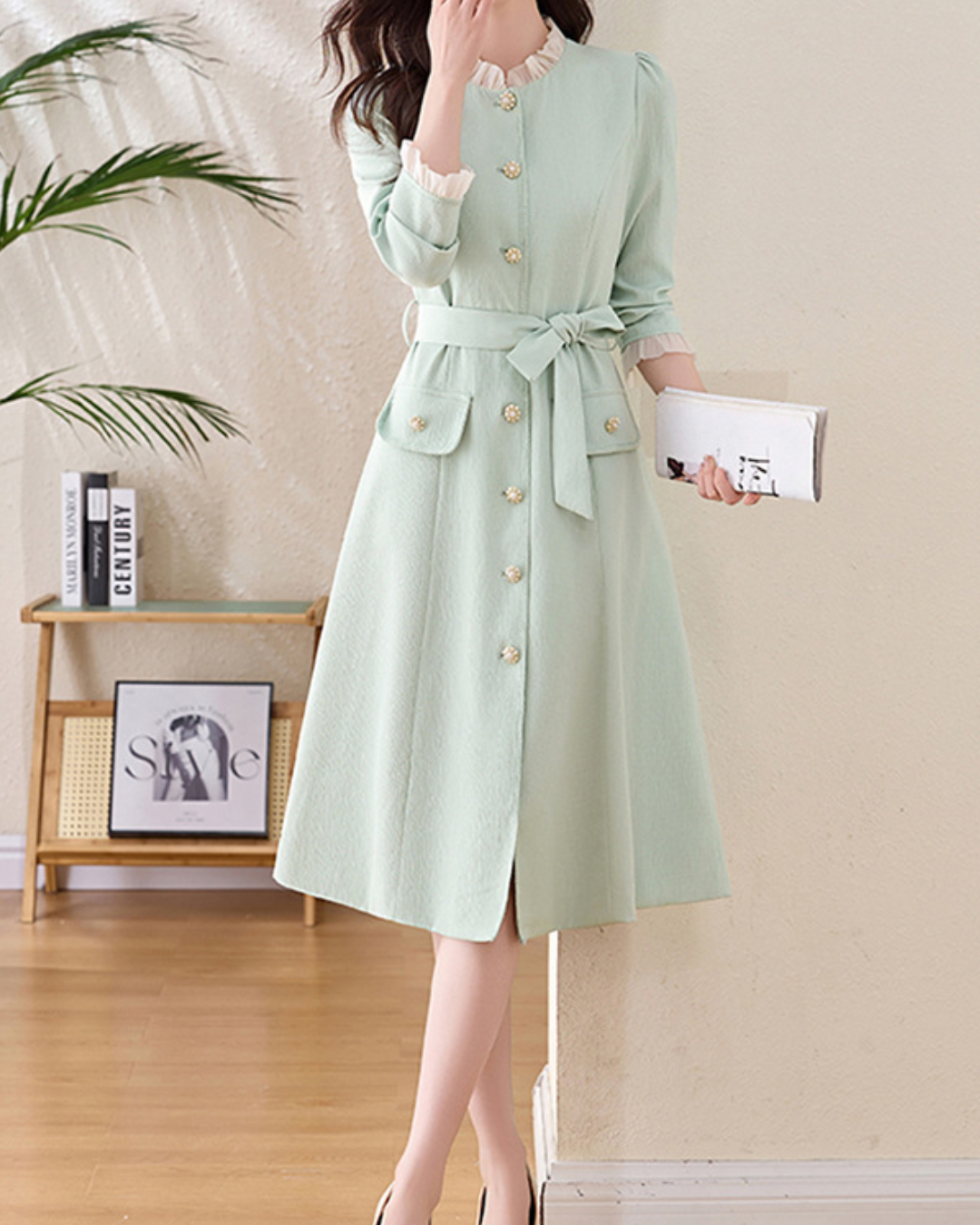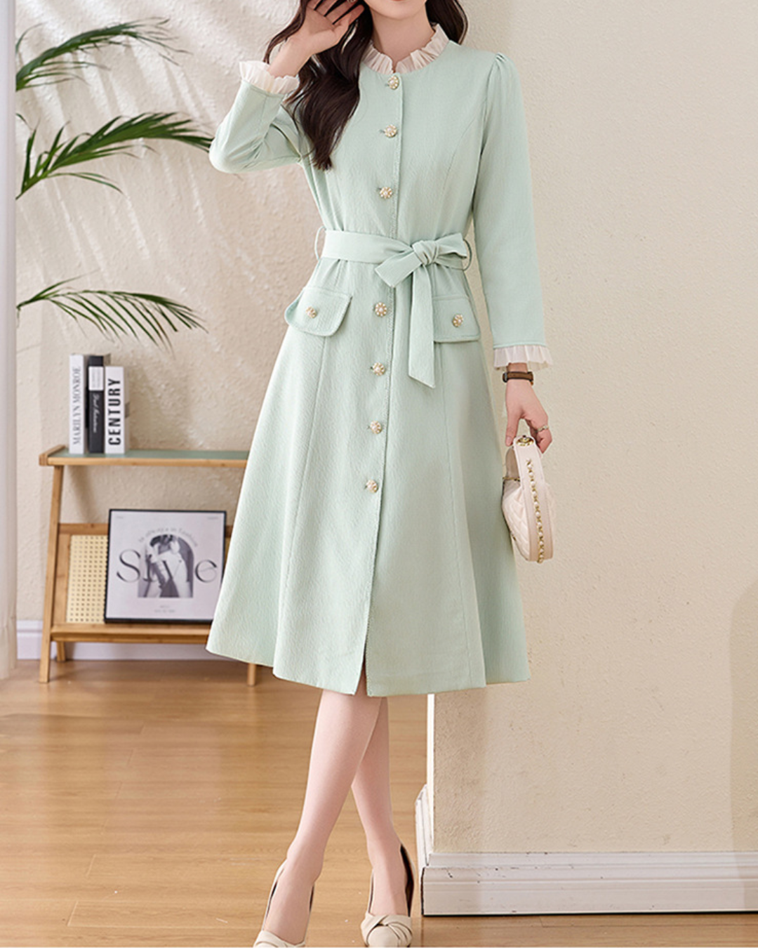 セミハイラウンドネックフリルカフスワンピース 1972