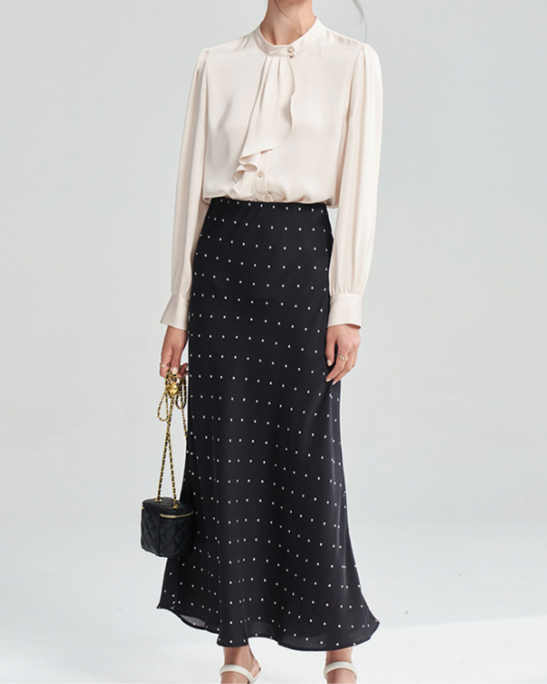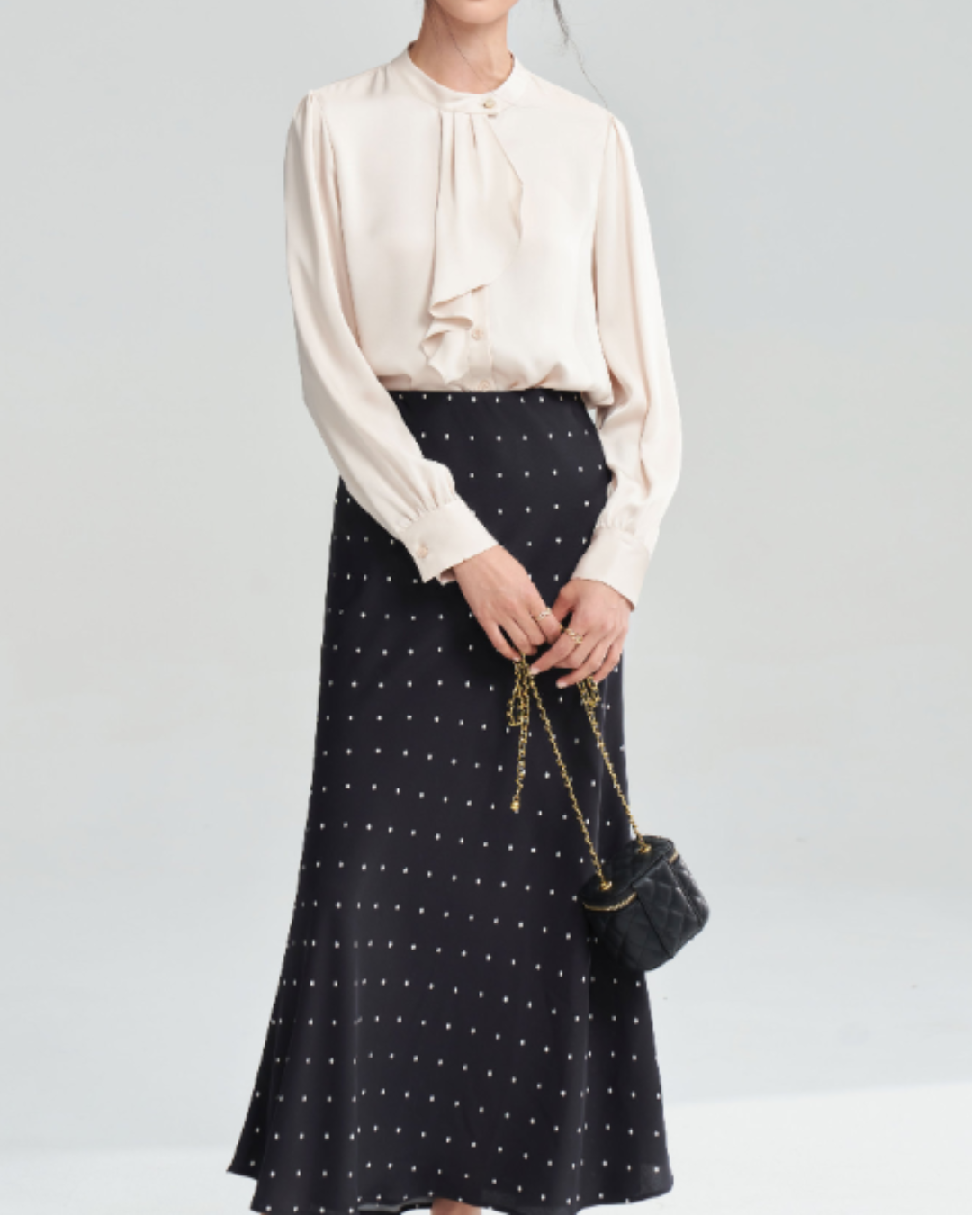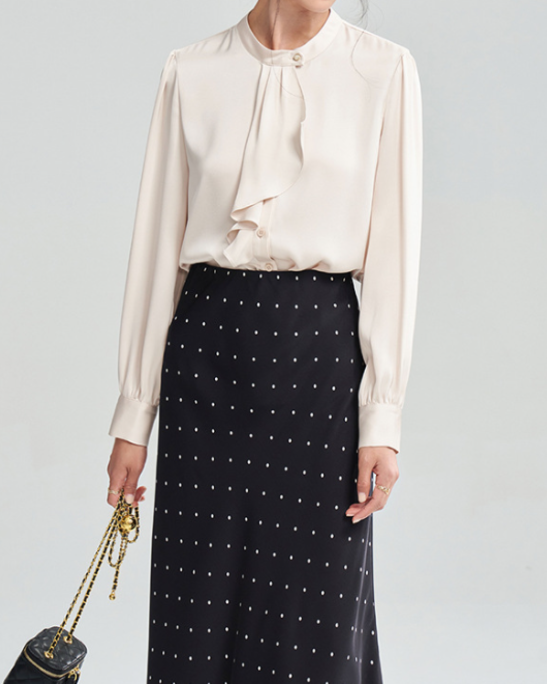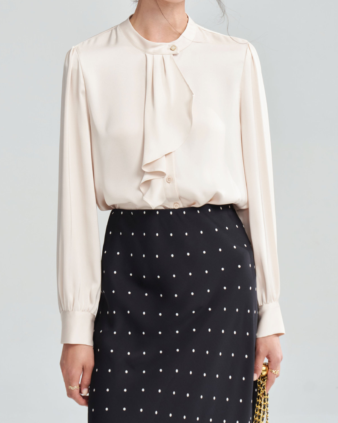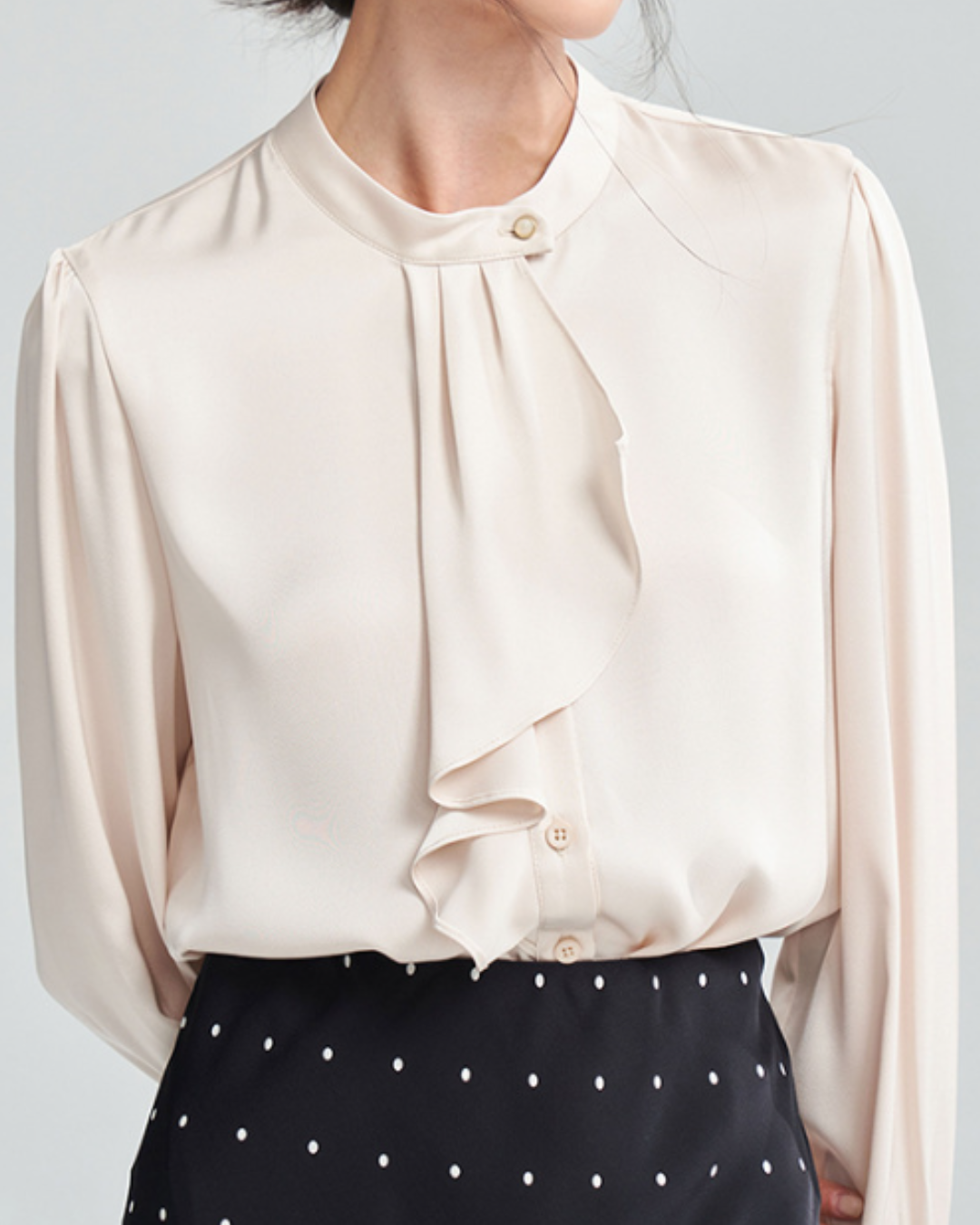 スタンドカラーキーネックソリッドカラーワンピース 1965