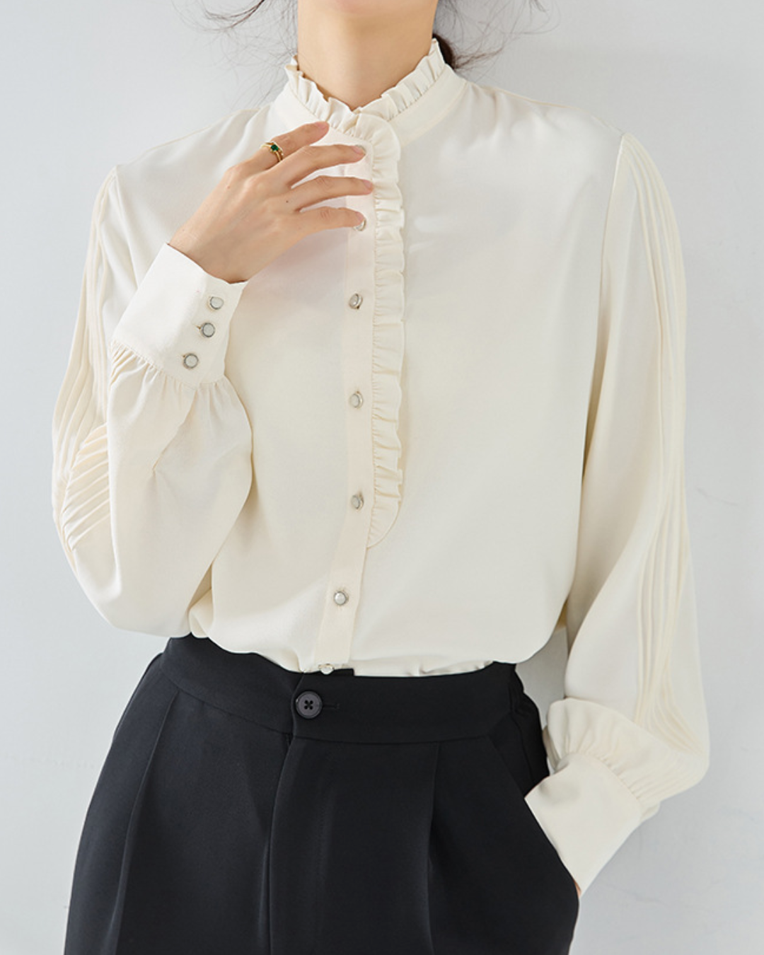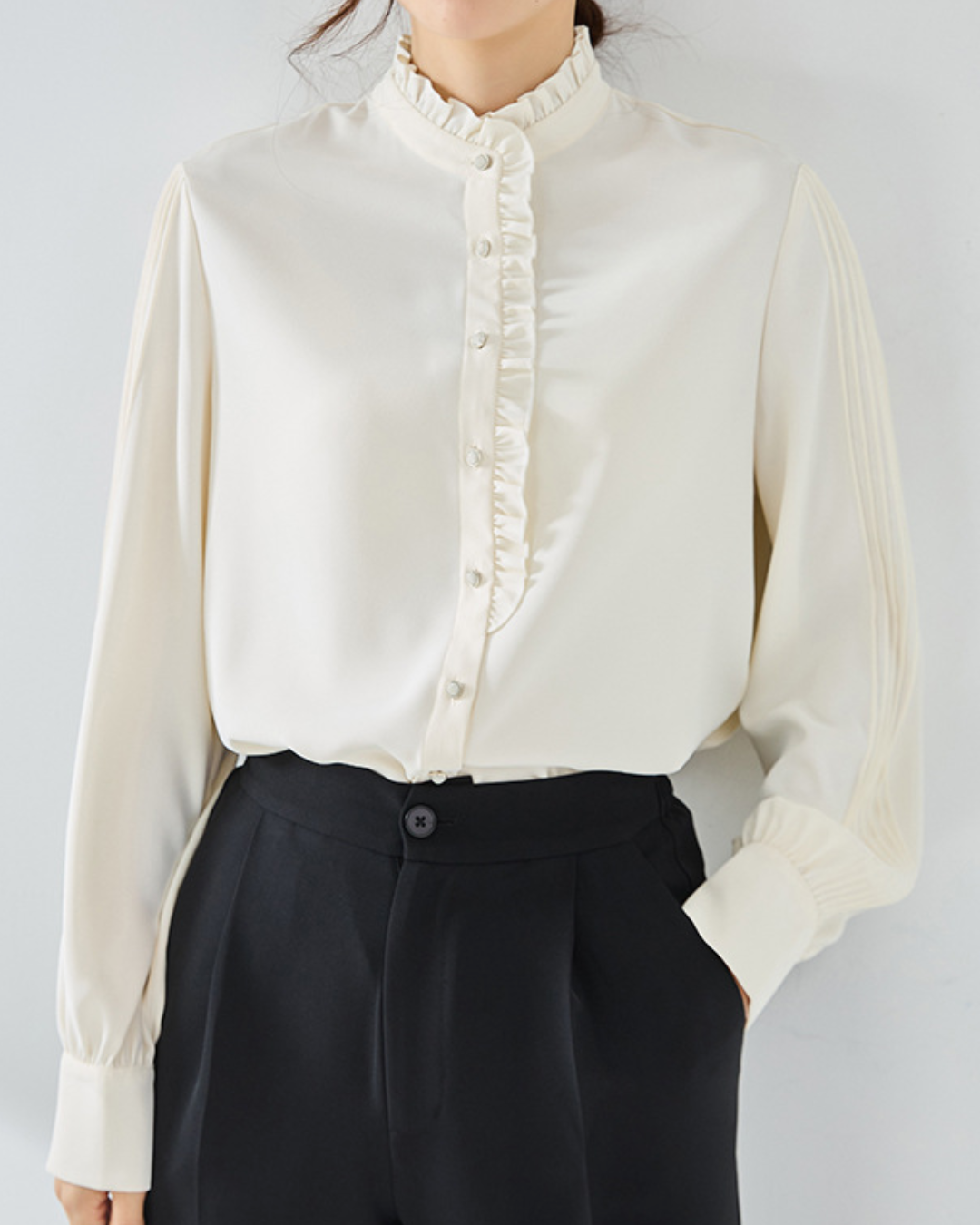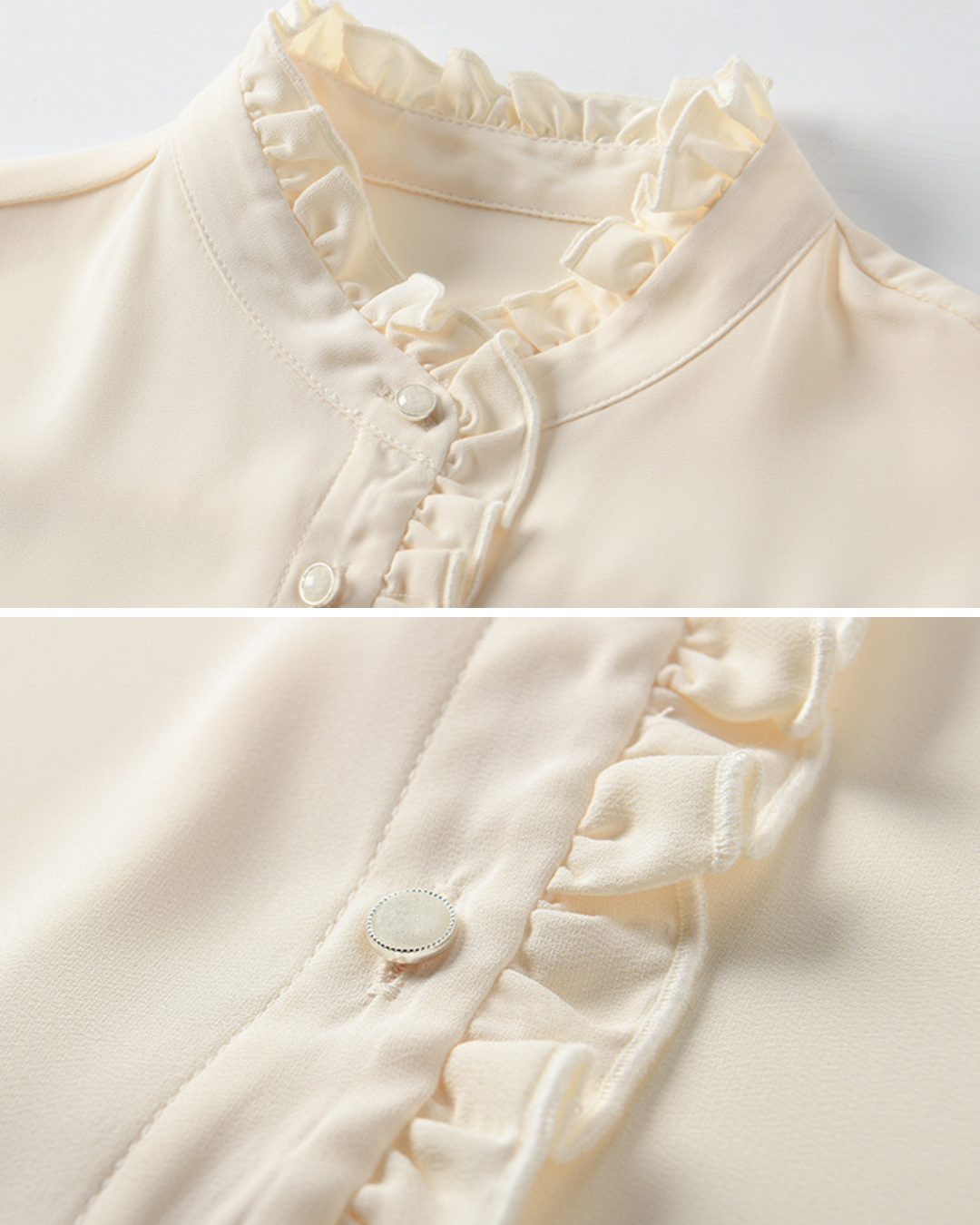 スタンドカラーキーネックソリッドカラーワンピース 1965