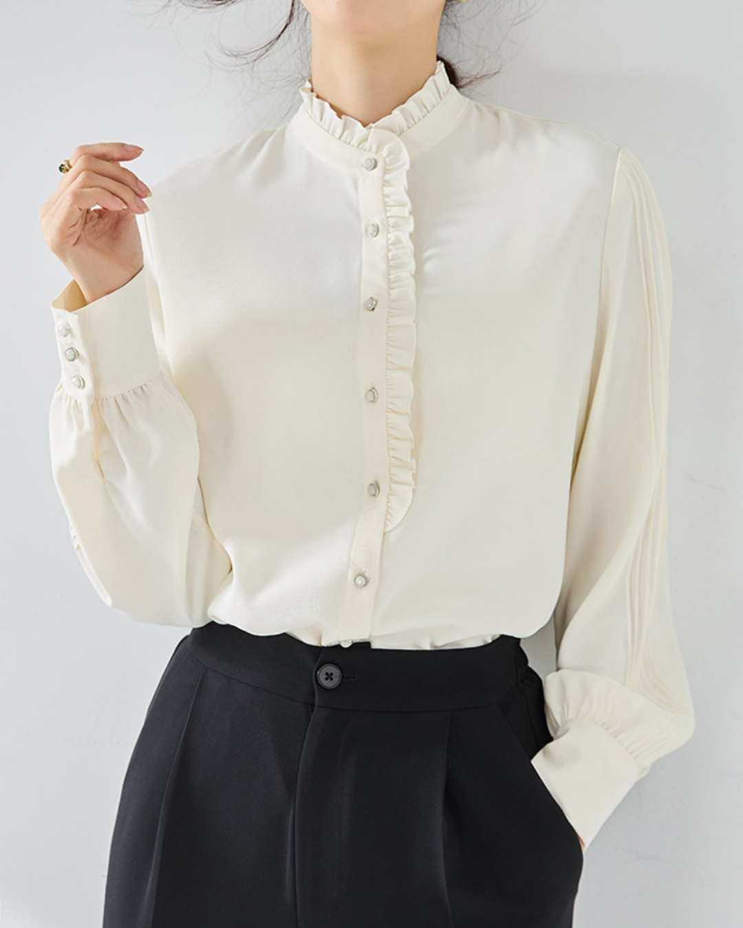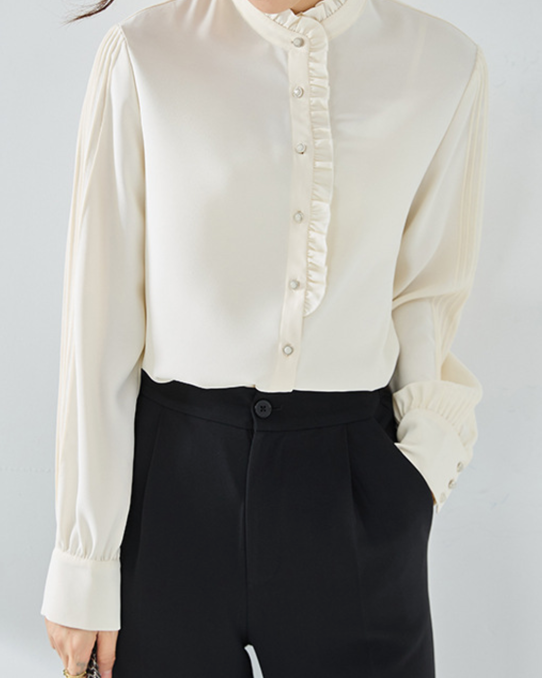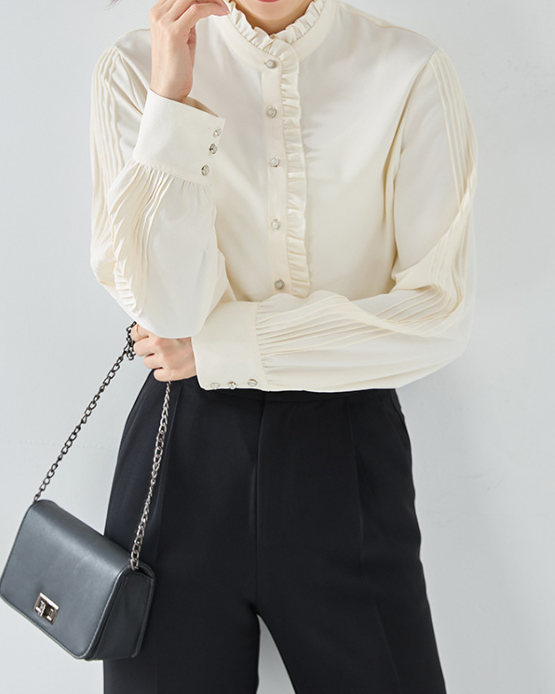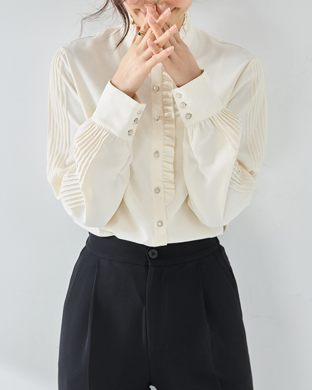 スタンドカラーキーネックソリッドカラーワンピース 1965