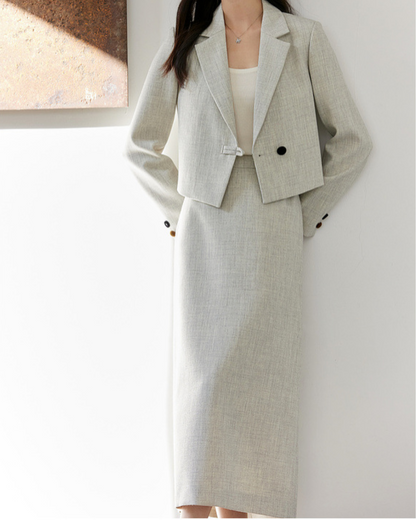 【セットアップ】シングルブレストショートジャケット+ハイウエストバックスリットスカート 2427